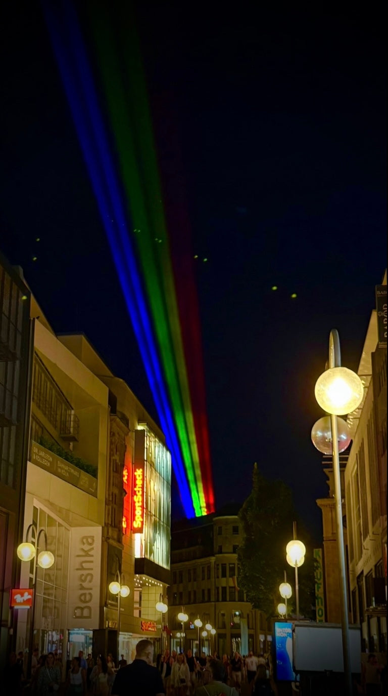 Es war einer dieser Tage, an denen der Himmel beschlossen hatte, uns auf die Probe zu stellen. Regen, Wind, graue Wolken und dazwischen immer wieder Sonnenstrahlen – und doch war die Luft voller Farben. Am Nachthimmel war ein Regenbogen zu sehen. Angela trug ihr langes, weit ausladendes Regenbogenkleid, das wie eine Fahne in Bewegung war. Sie lief durch die Menge, stolz wie eine Königin – und alle um uns herum achteten darauf, nicht auf den Stoff zu treten. Kein Schubsen, kein Drängeln. Nur Respekt.Ich stand daneben und beobachtete, wie selbst wildfremde Menschen ihr zulächelten, ihr Komplimente gaben oder ihr Platz machten. Manche spielten den Neid – aber es war ein ehrender Tribut. Sie fühlte sich nicht nur wie ein Star, sie war es. Und alle ließen sie einer sein. Es war faszinierend zu sehen, welche Leichtigkeit das Leben haben kann, wenn Menschen einander mit Respekt begegnen und nicht urteilen. Die wenigen respektlosen Blicke kamen von außerhalb, vom Rand. Und dann, mitten im Regen, sah ich sie alle: Menschen, die unsere Fahnen hochhielten, auch wenn der Wind sie zu Boden drücken wollte und der Regen sie schwer machte. Allen Widrigkeiten zum Trotz wurde die Fahne geschwungen – fest, entschlossen, wie ein Versprechen an uns selbst. Der Bass vibrierte durch den nassen Asphalt, und zwischen den Regentropfen mischten sich Tränen. Wir weinten – vor Stolz, vor Erleichterung, vor diesem überwältigenden Gefühl, nicht allein zu sein. In diesem Moment wusste ich wieder, warum wir so besonders sind. Wir stehen zusammen, wir kämpfen gemeinsam – und wenn es sein muss, gegen den ganzen Rest der Welt.