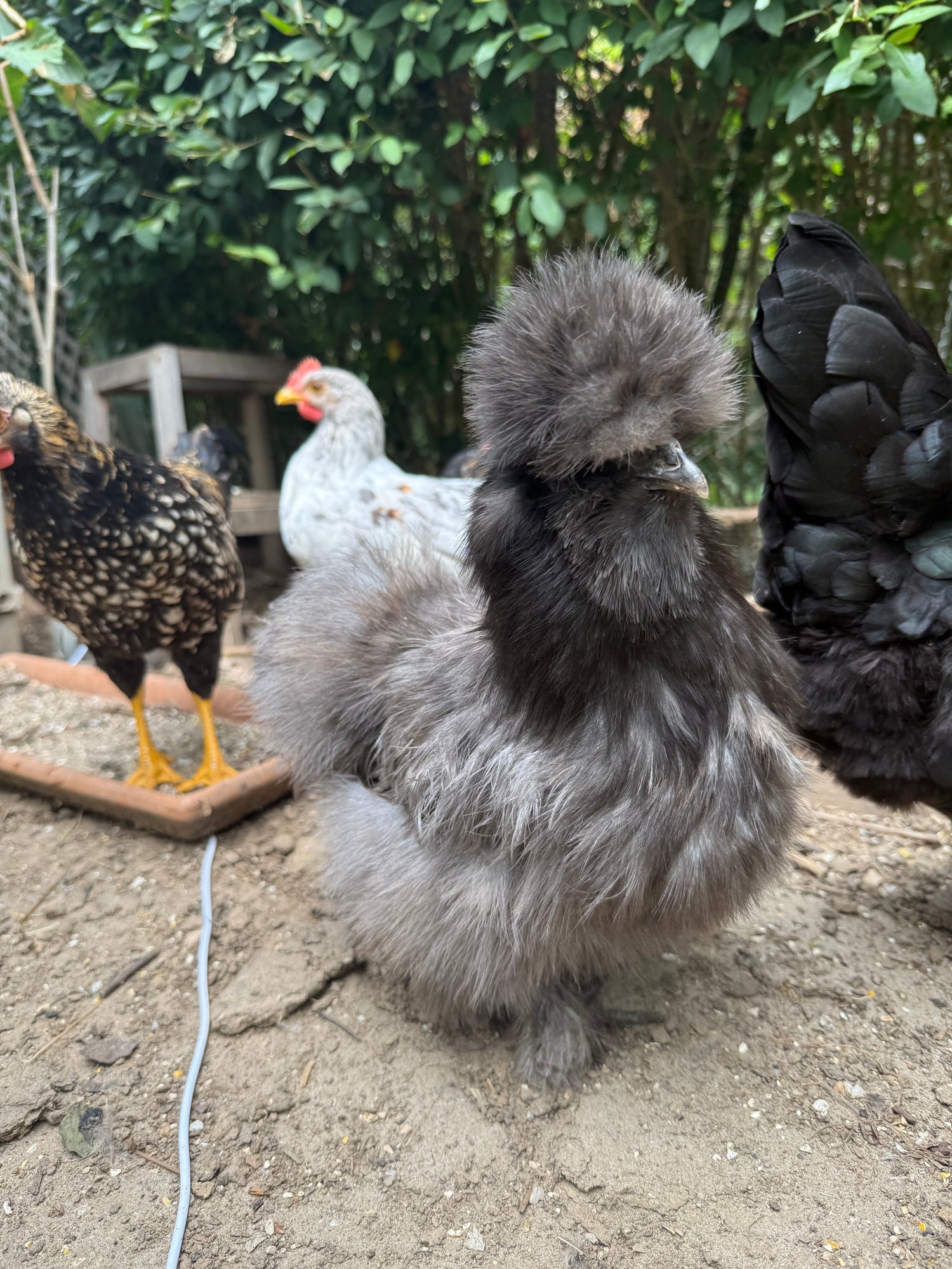 Sie steht stellvertretend für die ganze bunte Hühnerschar. Als selbstbewusste Chefin sorgt sie für Ordnung im Stall und achtet darauf, dass alles seinen geregelten Weg geht. Der Trupp besteht aus Hühnern unterschiedlichster Rassen, Farben und Formen – jedes ein Unikat mit eigenem Charakter.