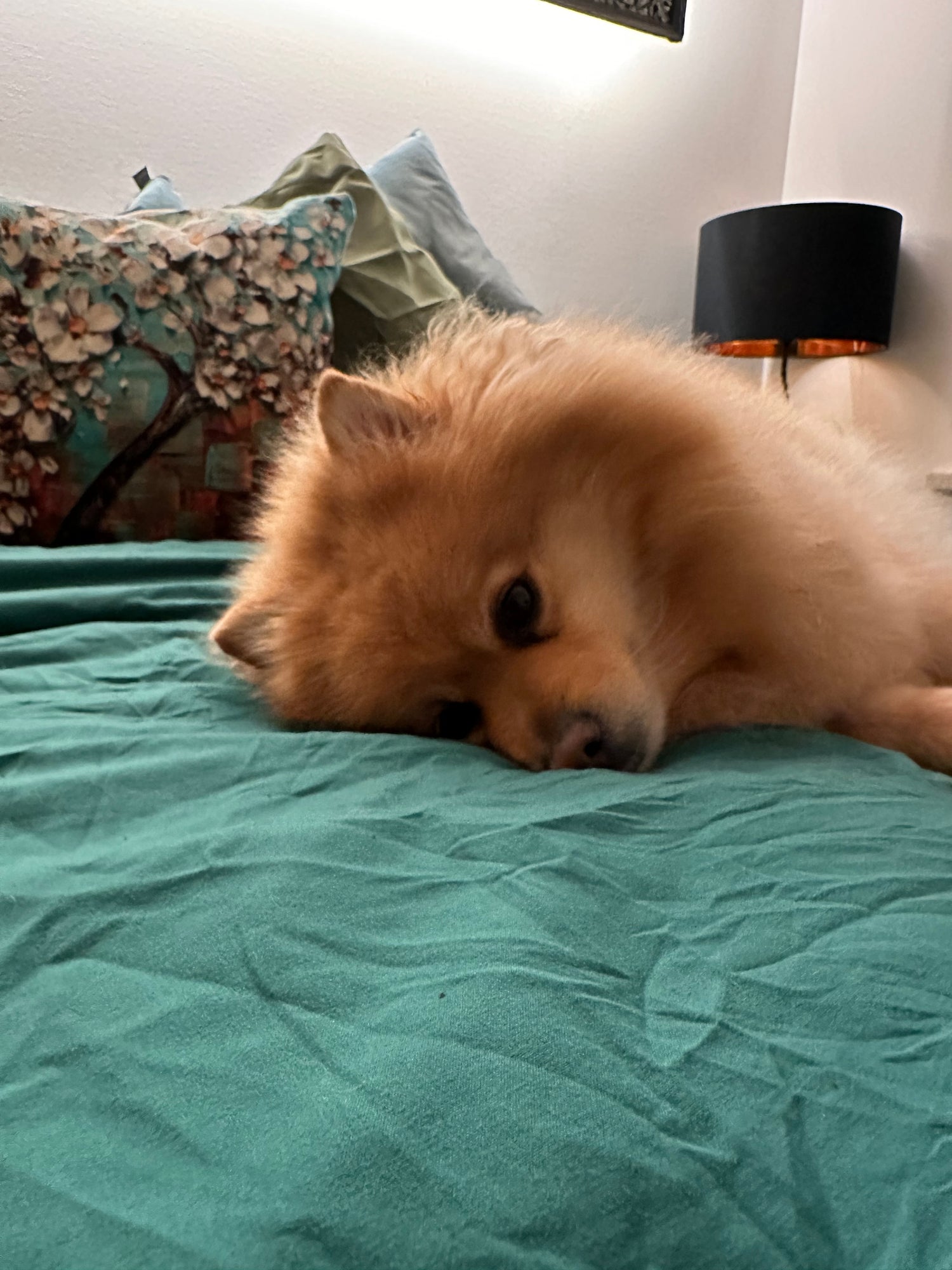 Er hat das Herz eines Löwen und ist mein absoluter Liebling. Ein Mittelspitz mit orangenem Fell, so weich wie Wolken und doch stark wie der Wind. Er begleitet mich auf Schritt und Tritt, bewacht Haus und Hof – und schenkt mir seine Unterwolle, aus der ich besonders widerstandsfähige Fasern gewinne.