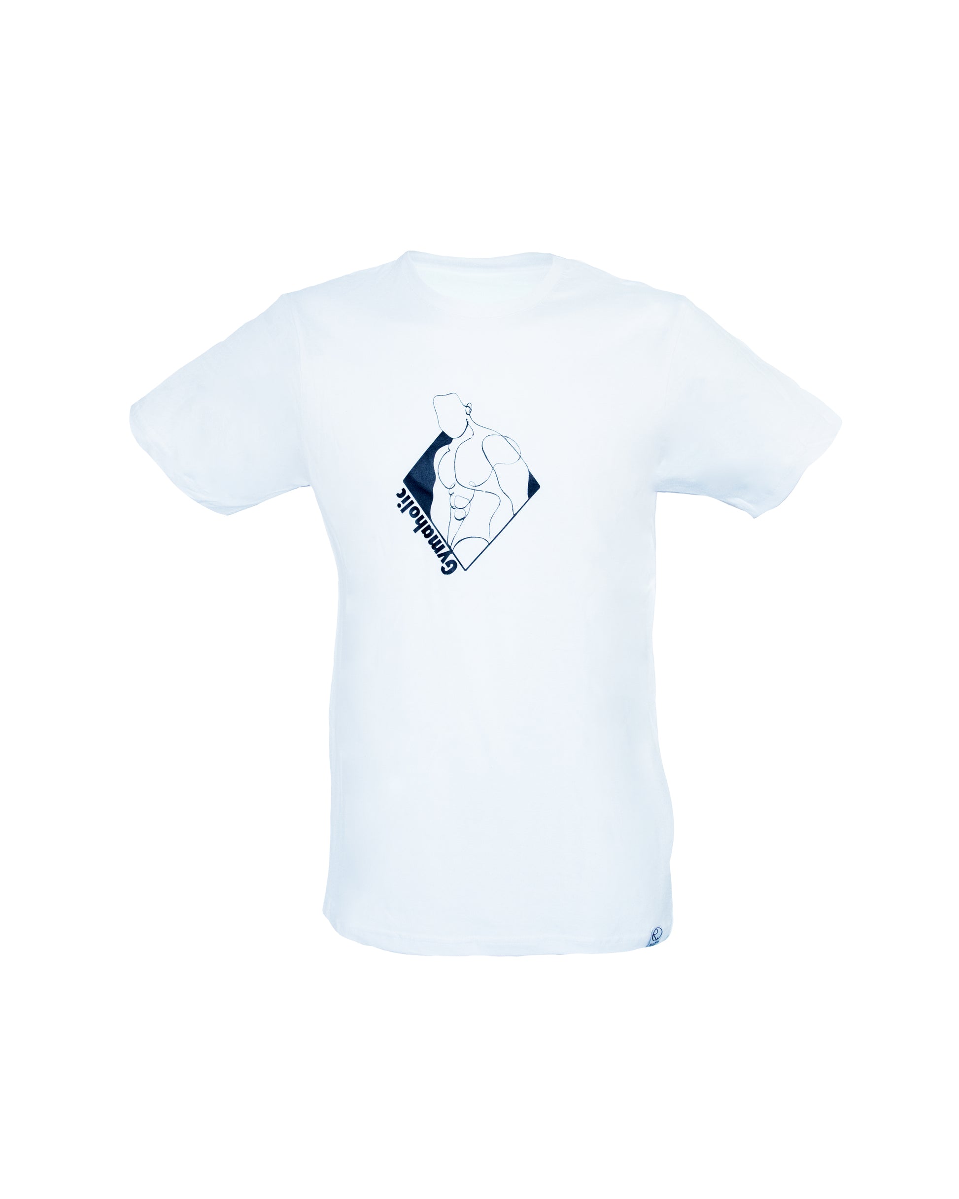 Ein stilisierter, durchgezogener Strich definiert einen muskulösen Oberkörper – reduziert, aber aussagekräftig. Dazu prangt in klarer Schrift „Gymaholic“ – ein Statement, das kraftvoll deine Fitness-Leidenschaft verkörpert: minimalistisch, klar und direkt.
