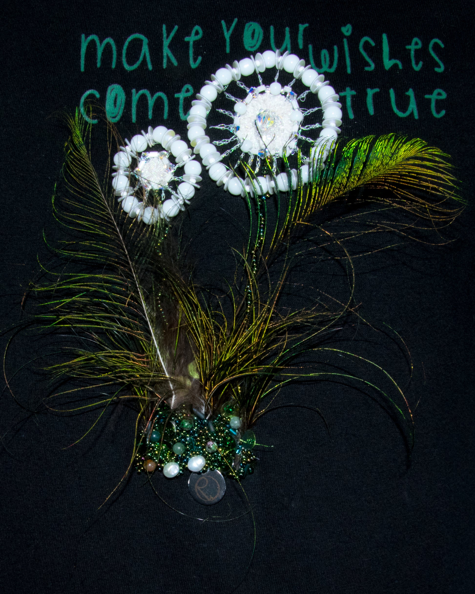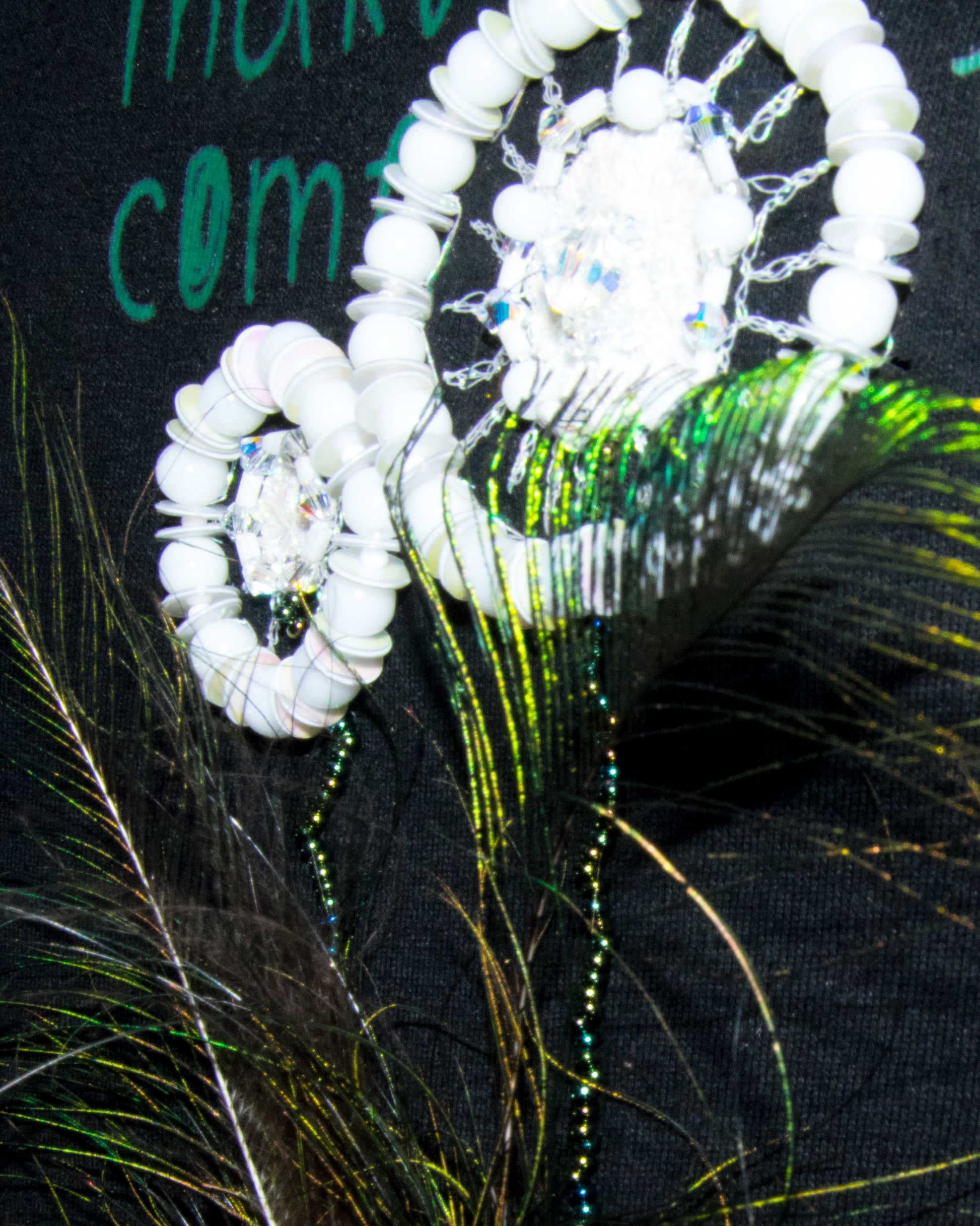 - Mit grünen Pfauenfedern, afrikanischen Türkis-, Rubin-in-Zoisit- und Süßwasser-Perlen