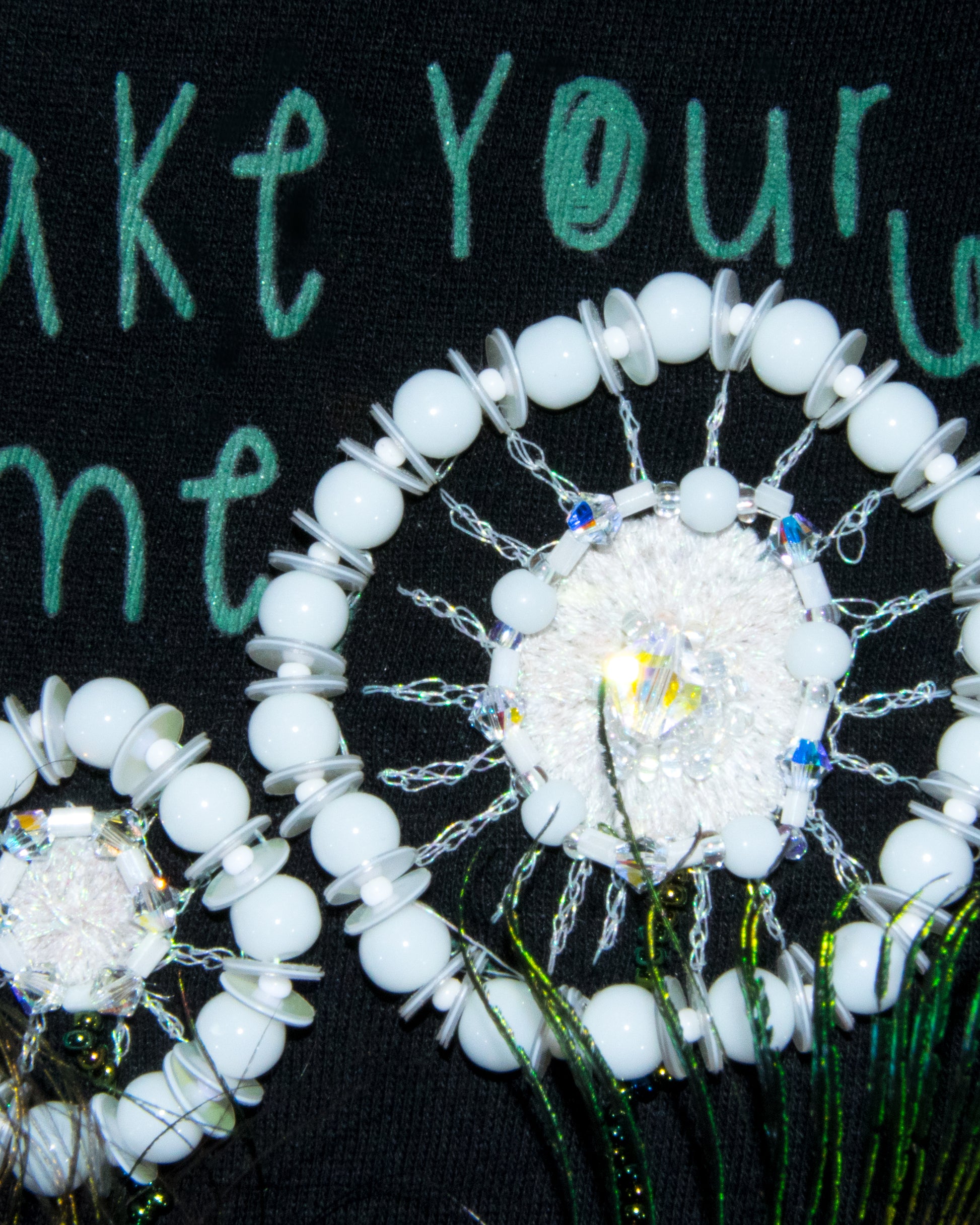 - Bestickt mit Metall- und Baumwollfäden, Swarovski-Perlen, weißen Jade-Perlen