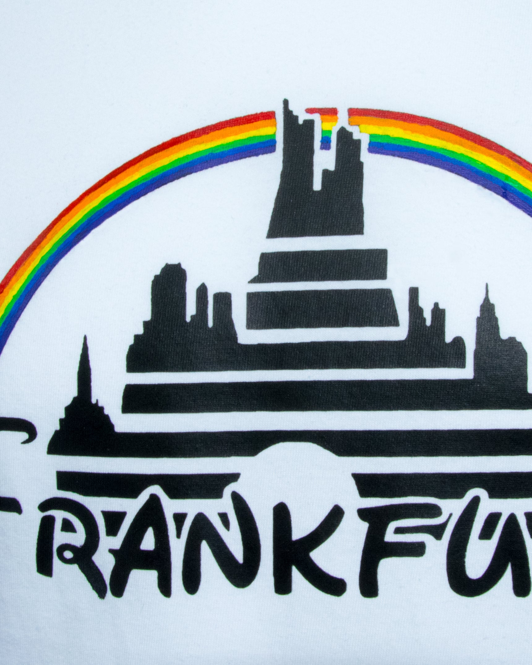 Die futuristische Skyline deiner Lieblingsstadt – in diesem Fall Frankfurt – als handgemaltes Remake. Der Schriftzug „Home“ bildet das Fundament der Darstellung, die Stadt und Gefühl gleichermaßen verkörpert. Ein Design, das zeigt: Wo du herkommst, prägt, was dich ausmacht – und lässt dich nie los.